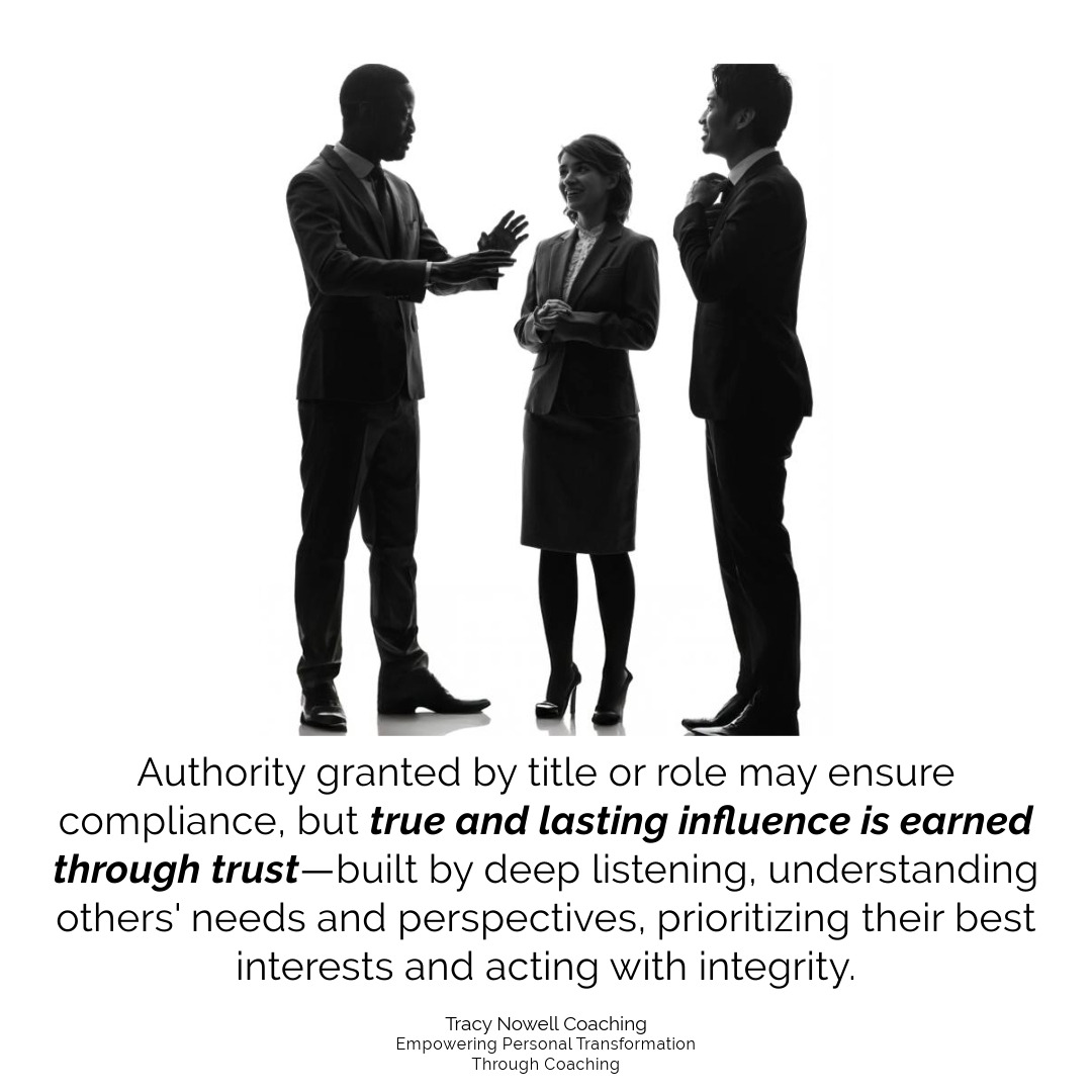 Trust-based influence builds a culture of respect, connection, and growth. When people trust you, they are more likely to share their true selves, offer their best efforts, and collaborate willingly. This enhances your ability to inspire, guide, and achieve shared goals.